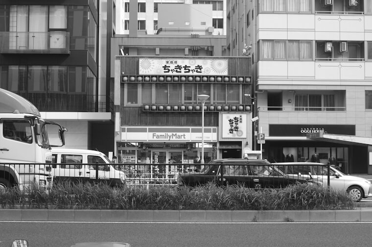 普段からモノクロの写真は撮らないのですが、先日旅行で行った名古屋に降り立ったときに「都会的な名古屋の雰囲気に会うかも!」と初めてアクロスを使って写真を撮りました。