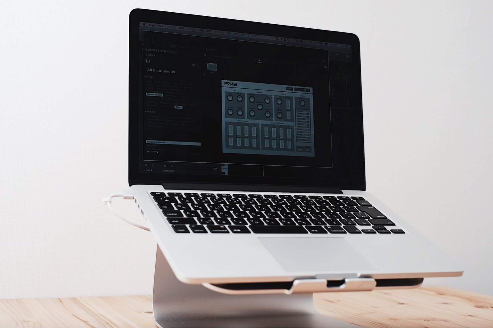 スタンドとMacBook Proの間にはスペースがあるのでアイデア次第で有効活用できそう。このスペースにオーディオインターフェイスを収納しても良さそうですね。